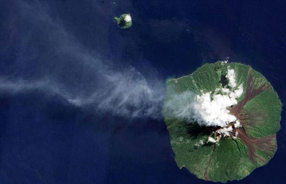 英国媒体近日公布了一组卫星上拍摄到的地球自然景观的照片,领观者颇感震撼。图为从卫星上拍到的火山喷发。