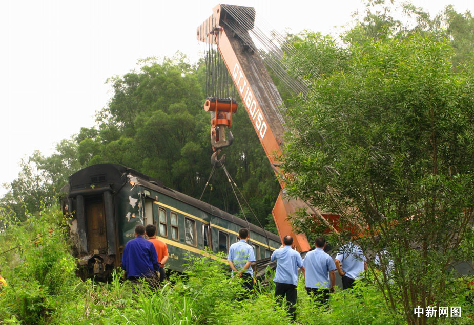 2009年7月29日4时22分,由襄樊开往湛江的1473次旅客列车运行至焦柳线广西境内古砦至寨隆间,因连日持续强降雨造成山体崩塌掩埋线路,列车机车及机后1-4位车辆脱轨,造成4名旅客死亡,50余名旅客受伤,焦柳线中断行车。曹伟军 摄