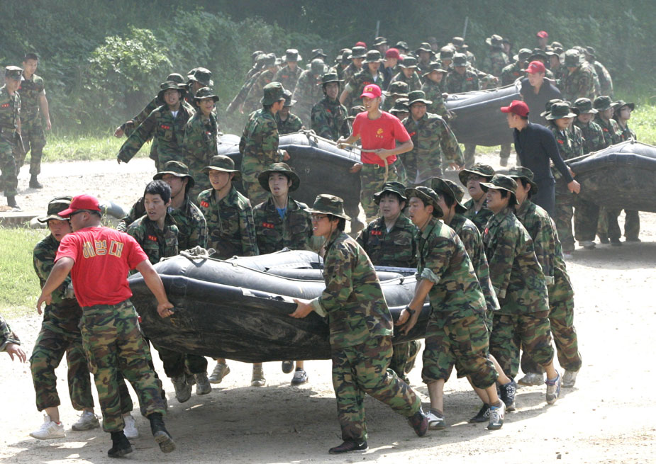 当地时间7月30日,在首尔的美军基地参加军训夏令营的韩国数百名学生来到金浦进行了泥地训练,场面十分激烈甚至残酷。