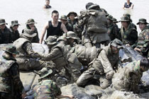当地时间7月30日,在首尔的美军基地参加军训夏令营的韩国数百名学生来到金浦进行了泥地训练,场面十分激烈甚至残酷。