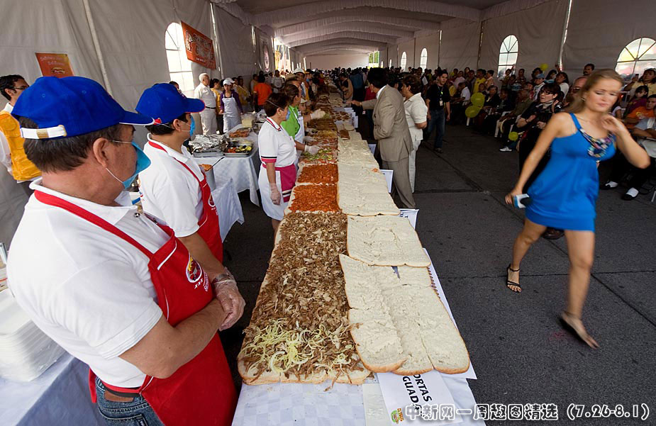 7月31日,在墨西哥首都200多人用肉等各种馅料制成长达46米的墨西哥三明治,试图创造最长的墨西哥三明治纪录。点击观看详细内容