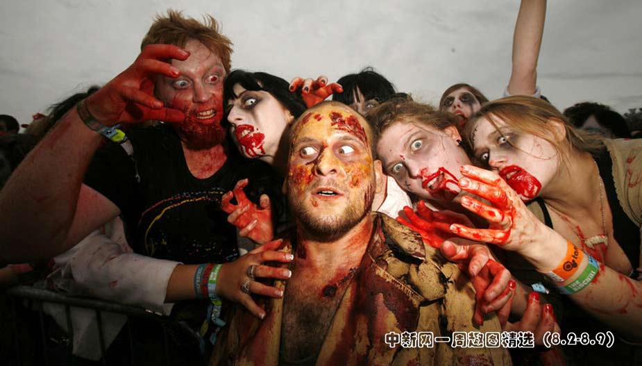 2009年8月6日,英国赫里福德郡Eastnor城堡,人们化装成“僵尸”出现在大寒音乐节上。(图片来源:CFP)点击观看详细内容
