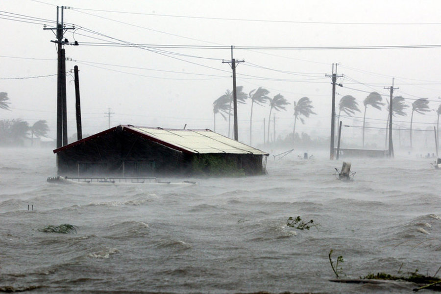 莫拉克台风侵袭台湾,造成南部大淹水,屏东县林边乡整个地区都泡在水里。 刘学圣 摄