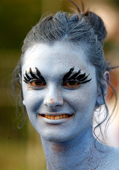 图为参加狂欢节的人们在脸上进行“涂鸦”。
