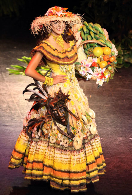 图为厄瓜多尔小姐维塞斯演绎民族服饰。