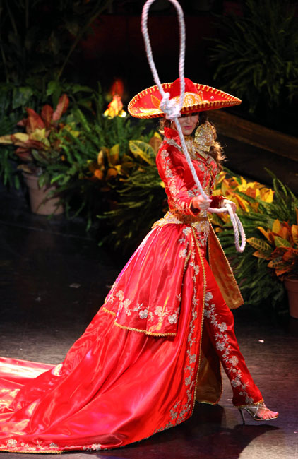 图为墨西哥小姐卡瑞罗穿着融入民族元素的服饰登台展示。