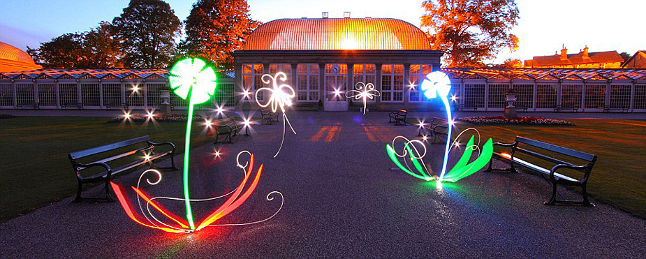 摄影师Michael Bosanko在英国植物园拍摄的名为“插花艺术”的光涂鸦照片。