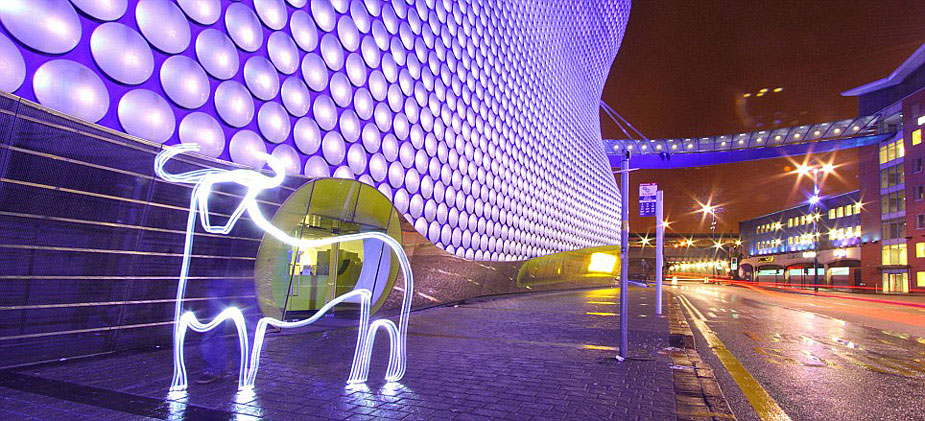 摄影师Michael Bosanko在英国伯明翰斗牛广场拍摄的名为“斗牛”的光涂鸦照片。
