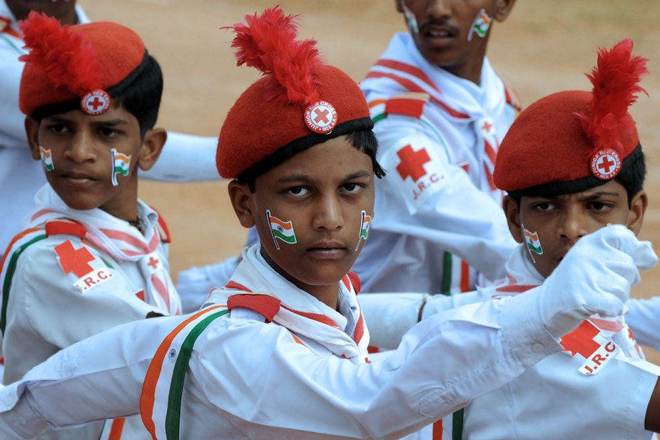 庆祝独立62周年阅兵式上的印度童军在做队列表演。