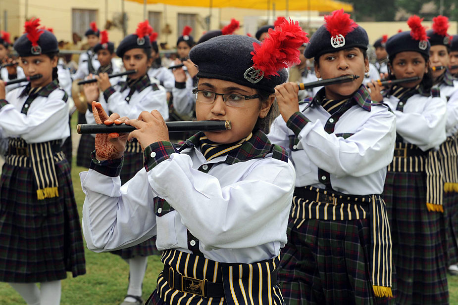 图为庆祝独立62周年阅兵式上的印度童军表演队列。