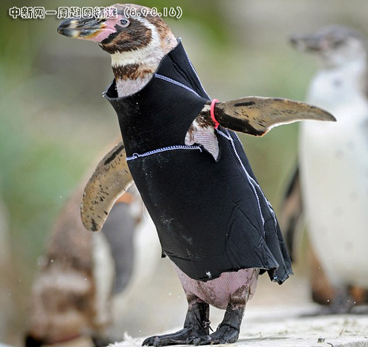 英国温彻斯特市马尔威尔野生动物园的一只洪氏环企鹅由于褪毛,管理人员竟出奇招给它穿上了新式游泳衣。点击观看详细内容