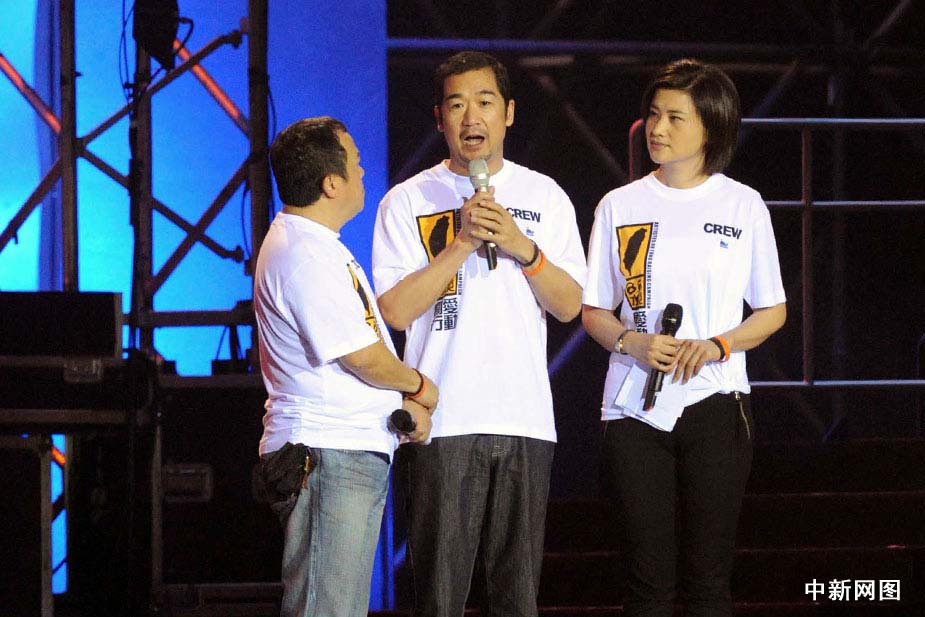 8月17日晚,香港举办《8·8水灾关爱行动》演唱会,许多著名演员和当红歌手出席演唱会。中新网记者 邓庆乐 摄