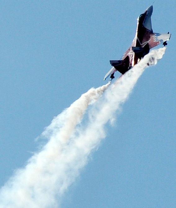 8月18日,2009莫斯科国际航空航天展(MAKS-2009)开幕。图为精彩的飞行表演。
