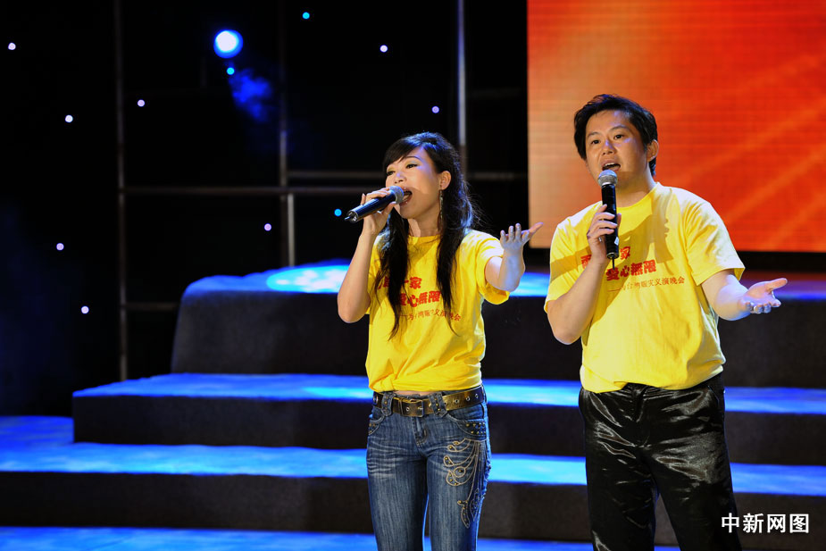 8月22日晚,北京举行“两岸一家 爱心无限”为台湾同胞赈灾义演晚会,大陆和台湾演艺界明星登台为台湾灾区同胞共献爱心,晚会临近结束时共收到各界捐款3000多万元。中新网记者 金硕 摄