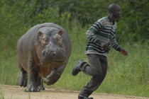 大河马遭扰怒追看守人