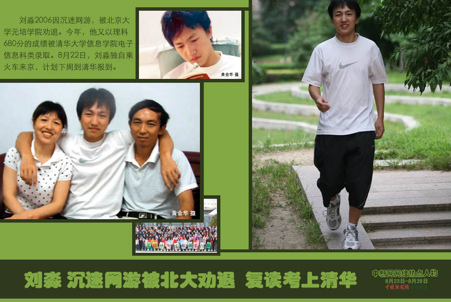 中新网本周热点人物之——刘淼 刘淼2006因沉迷网游,被北京大学元培学院劝退。今年,他又以理科680分的成绩被清华大学信息学院电子信息科类录取。8月22日,刘淼独自乘火车来京,计划下周到清华报到。