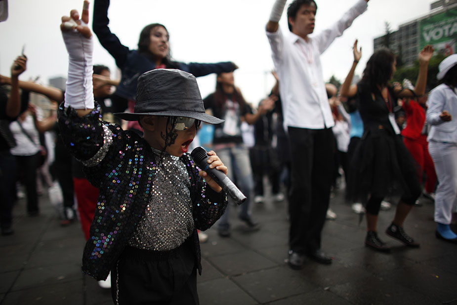 8月29日,逾万名墨西哥人在墨西哥城广场同时跳舞,用以纪念迈克尔·杰克逊第51个“生日”,同时也试图打破同时跳舞人数最的吉尼斯世界纪录。图片来源:中国新闻网