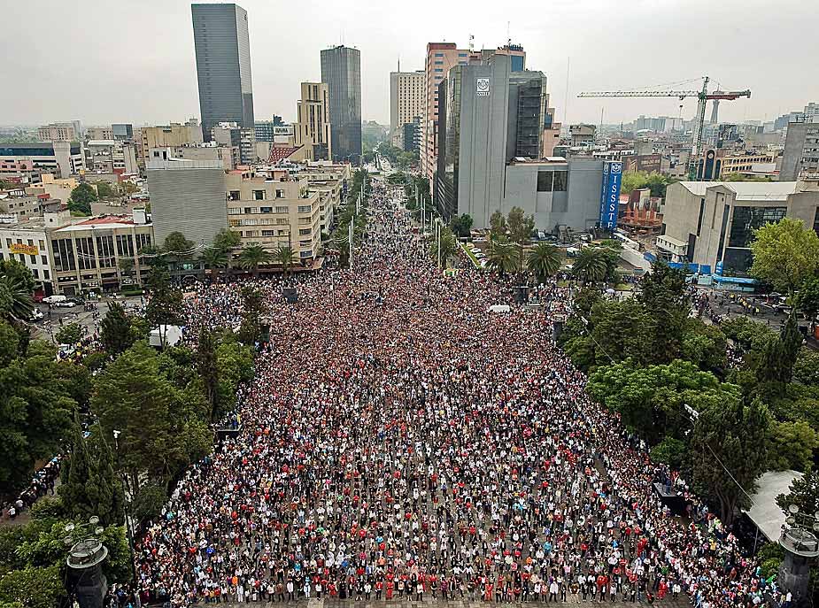 8月29日,逾万名墨西哥人在墨西哥城广场同时跳舞,用以纪念迈克尔·杰克逊第51个“生日”,同时也试图打破同时跳舞人数最的吉尼斯世界纪录。图片来源:中国新闻网