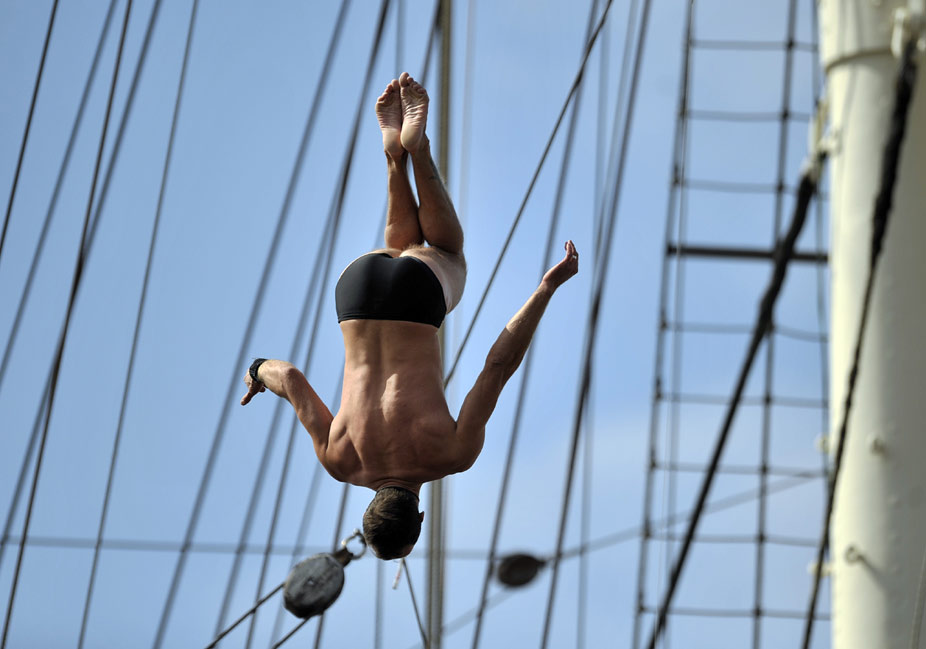 当地时间8月29日,世界悬崖跳水系列赛在德国汉堡举行。图片来源:中国新闻网