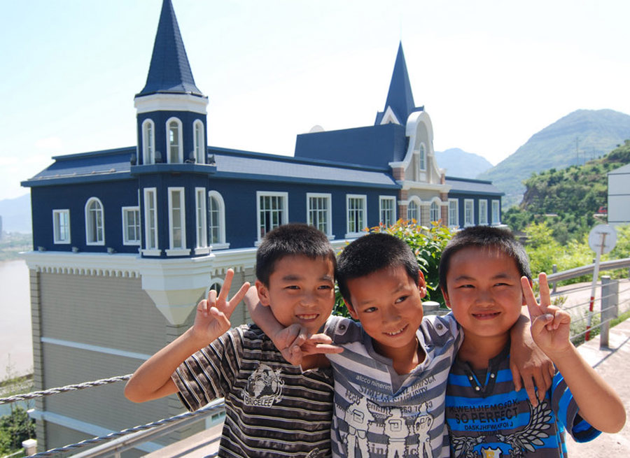2009年8月31日,在重庆云阳县盘龙镇中国海外三峡希望小学,孩子们高高兴兴地开始学习新课程。该小学占地近5亩,有校舍面积近2000平方米,教育设施设备齐全,按抗八级地震设计,全框架结构,现有学生500多名。由于学校华丽的外观,网友称其为“中国最美的希望小学”。尽管现在各界争论声一片,但学校老师认真教,学生专心学,尽情在“宁静的天空”中享受新学期的学习和生活。桑榆/CFP