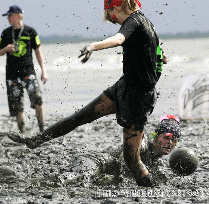 德国北部海边小镇Brunsbuettel的泥滩上进行一场别开生面的泥地足球赛。图片来源:中国新闻网