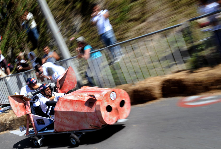 9月6日,哥伦比亚麦德林市举行了一场别开生面的小汽车竞赛,参赛选手带着各自设计的奇形怪状的“赛车”前来参加比赛。来源:中国新闻网