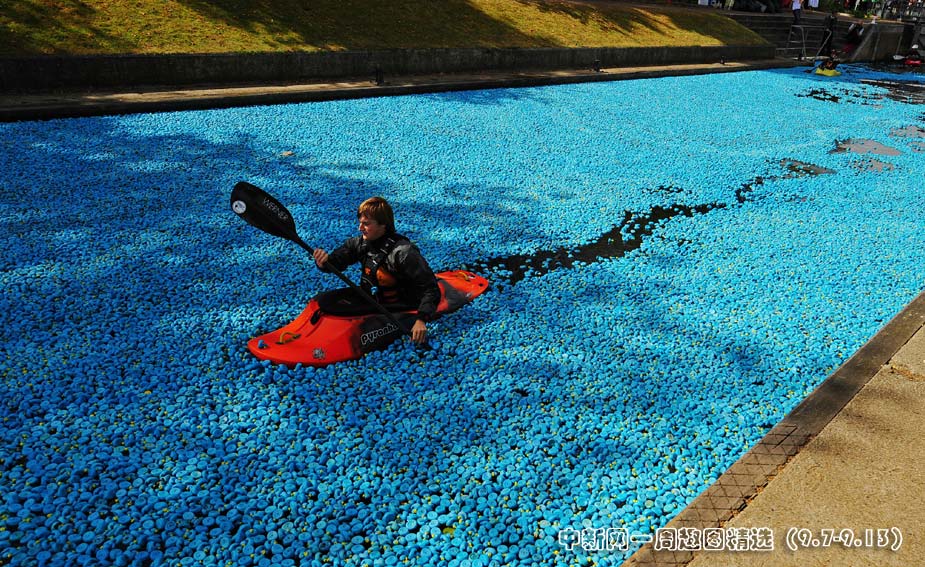 9月6日,英国伦敦当日举行了一场“大英赛鸭活动”。此次活动中,大约有20.5万只蓝色橡胶鸭子漂浮在泰晤士河上,这也打破了现有的20万只鸭子漂流的世界纪录。图片来源:中国新闻网