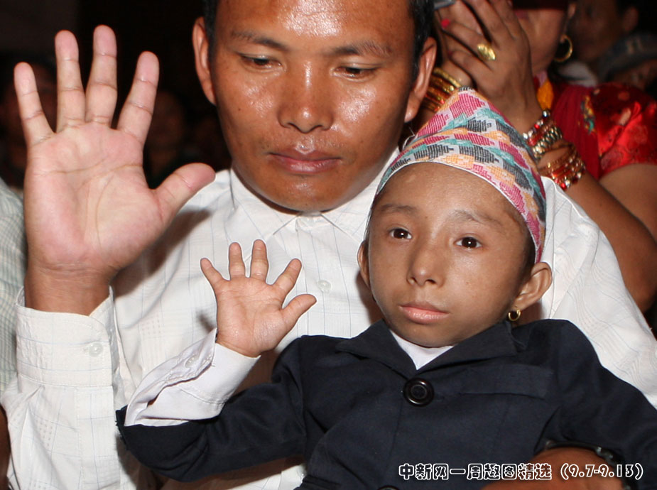 9月7日,尼泊尔17岁少年塔帕·马嘉尔身高51厘米,体重仅有4.5公斤。再过一个月将迎来他18周岁生日,届时将申报“世界最矮的人”吉尼斯世界纪录。图片来源:中国新闻网