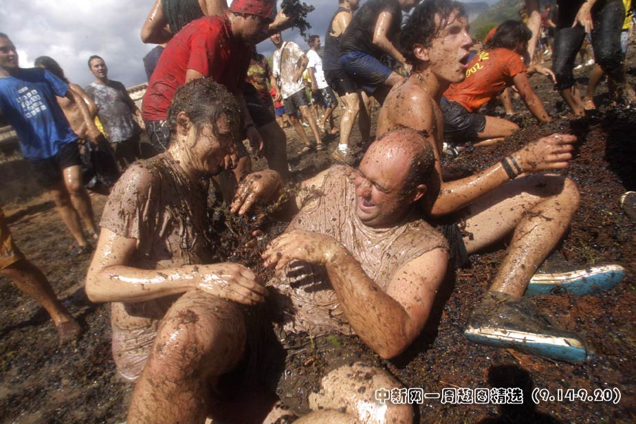 9月19日,在西班牙马略卡岛举行了一年一度的“葡萄大战”,人们以此庆祝当地葡萄丰收。图片来源:中国新闻网