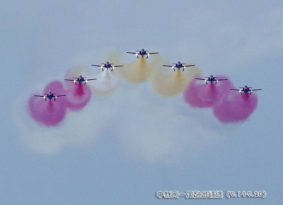 9月13日,西班牙南部加地斯地区举行了一场别开生面的飞行表演。这次飞行表演使用的是二战时期的老式飞机。图片来源:中国新闻网
