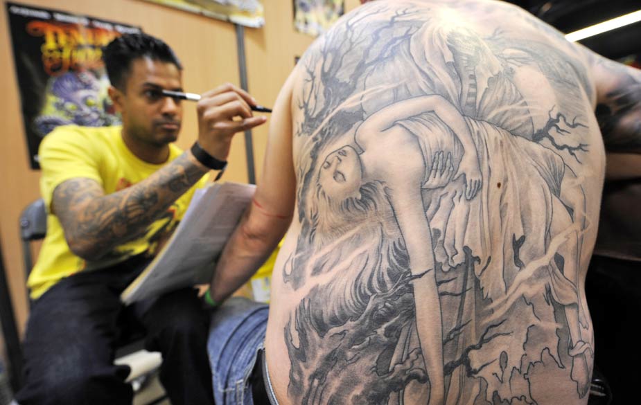 巴黎“纹身艺术节” 纹身大师争相献艺