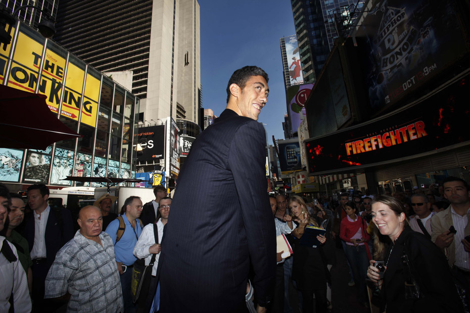 9月21日,身高2.465米的土耳其人柯森在美国纽约拿到了“世界第一高人”的吉尼斯世界纪录证书。这项纪录的上一位保持者是身高2.36米中国人鲍喜顺。来源:中国新闻网