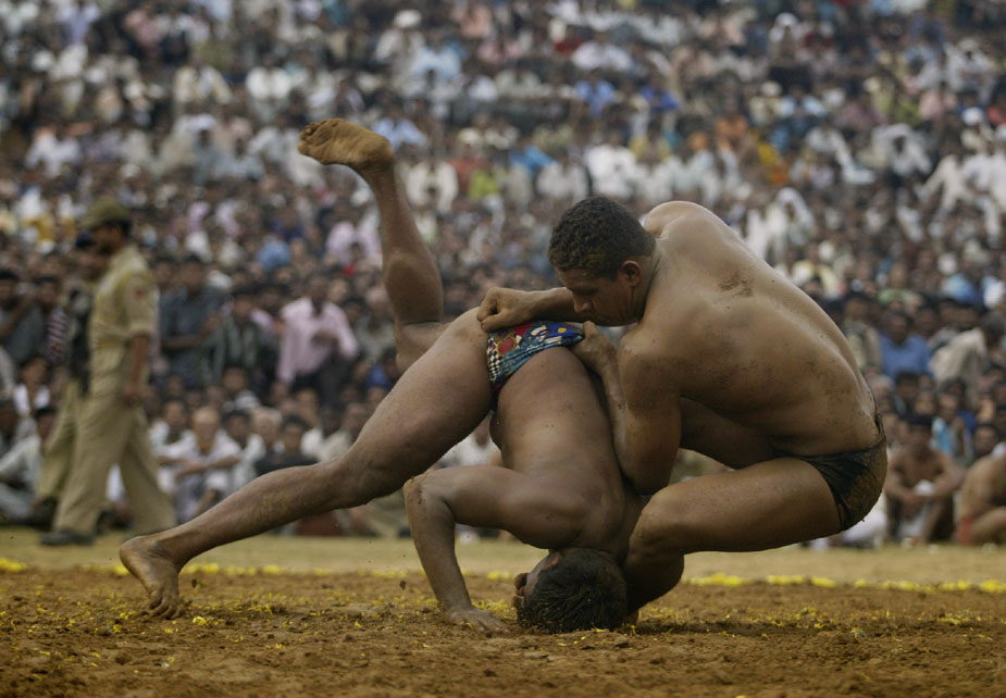 9月22日,印度格德拉,第5届印度-巴基斯坦摔跤友谊赛在当地举行。