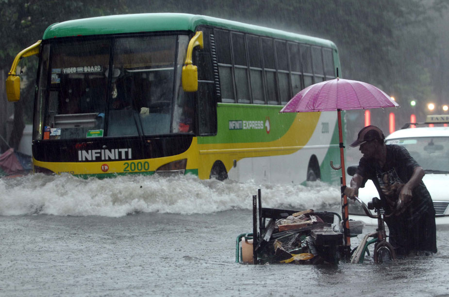 热带风暴“凯萨娜”26日吹袭菲律宾北部吕宋岛,首都大马尼拉地区出现逾42年来最严重水灾,几乎变成泽国。图片来源:中国新闻网