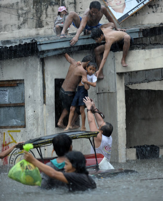 热带风暴“凯萨娜”26日吹袭菲律宾北部吕宋岛,首都大马尼拉地区出现逾42年来最严重水灾,几乎变成泽国。图片来源:中国新闻网