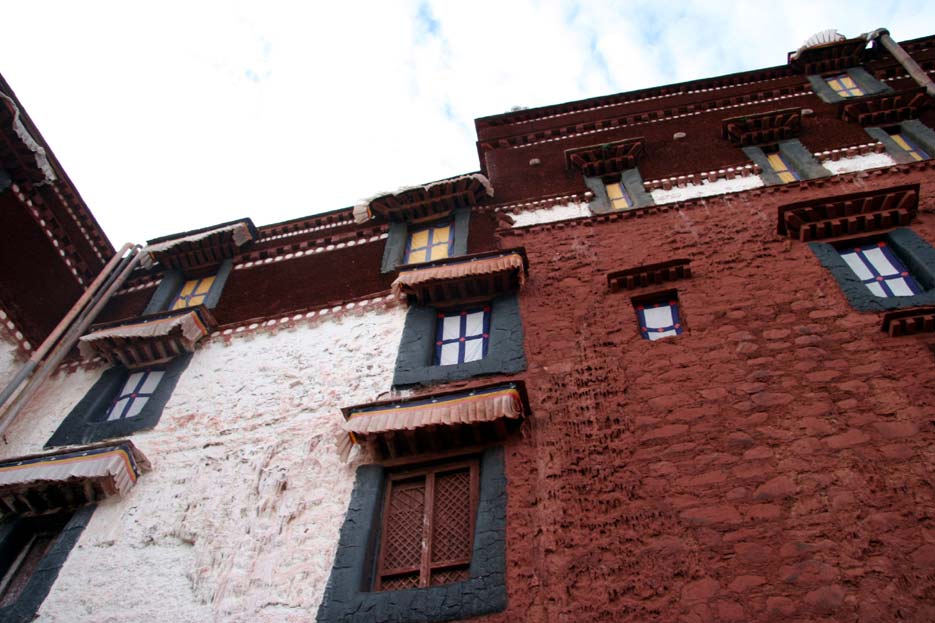 红宫主要是达赖喇嘛的灵塔殿和各类佛殿。图为白红和红宫的临界。