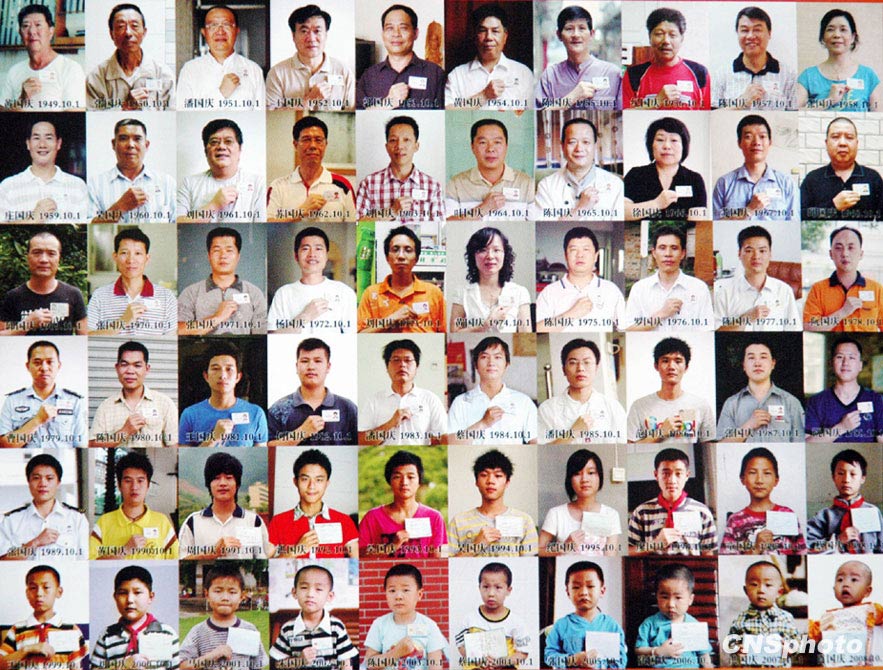 9月27日,“见证祖国60岁 我的名字叫国庆”摄影个展在福州举行。为了纪念中华人民共和国成立60周年,福建职业摄影师阮晓榕历时四个多月,历经8000余公里行程,寻访了近百人,最终成功拍摄了从1949年到2008年10月1日出生、名字叫“国庆”的60个人。 中新社发 张 斌 摄
