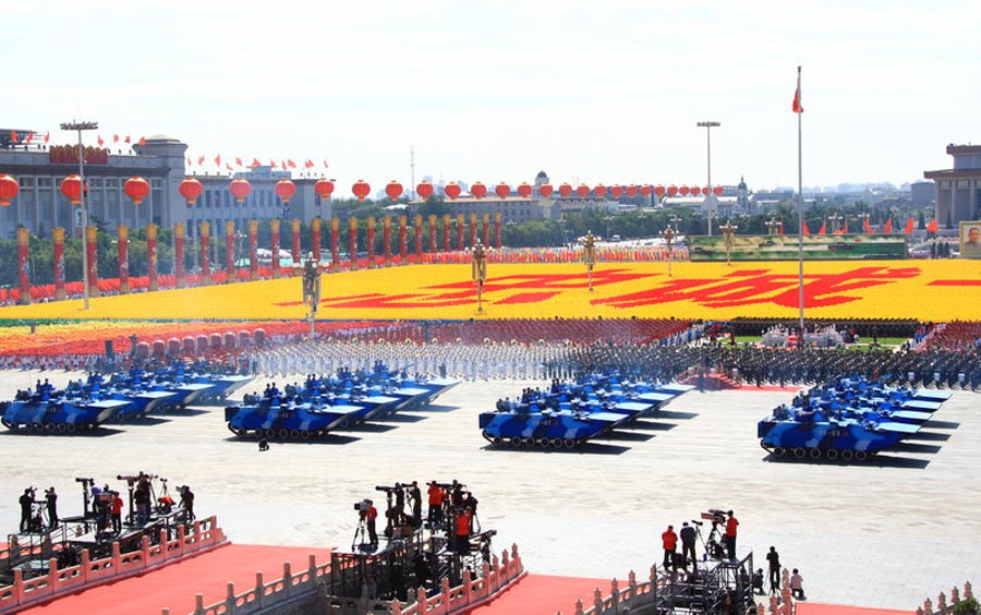 国庆60周年阅兵10月1日上午在天安门广场成功举行。由人民解放军、武装警察部队和民兵预备役部队8000余名官兵组成的受阅方阵接受检阅。 点击观看更多