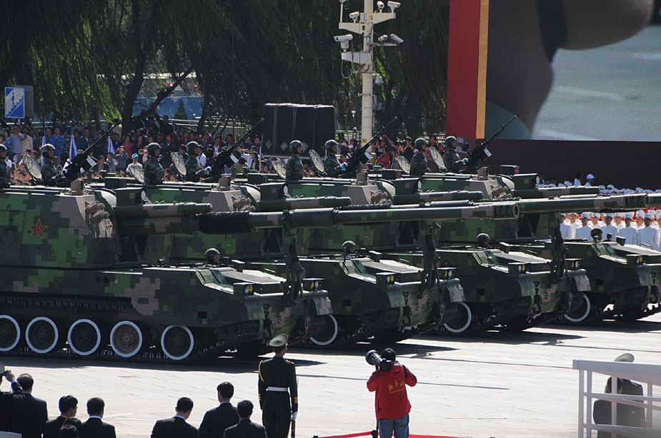 2009年10月1日,中华人民共和国成立60周年庆祝大会在北京天安门广场举行。图为履带自行加榴炮方队。中新网记者 摄