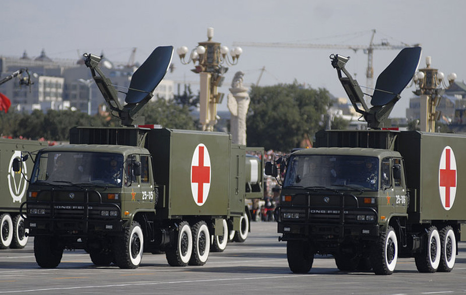 10月1日,首都各界庆祝中华人民共和国成立60周年大会在北京举行。这是后勤装备方队接受检阅。(麦田/CFP)