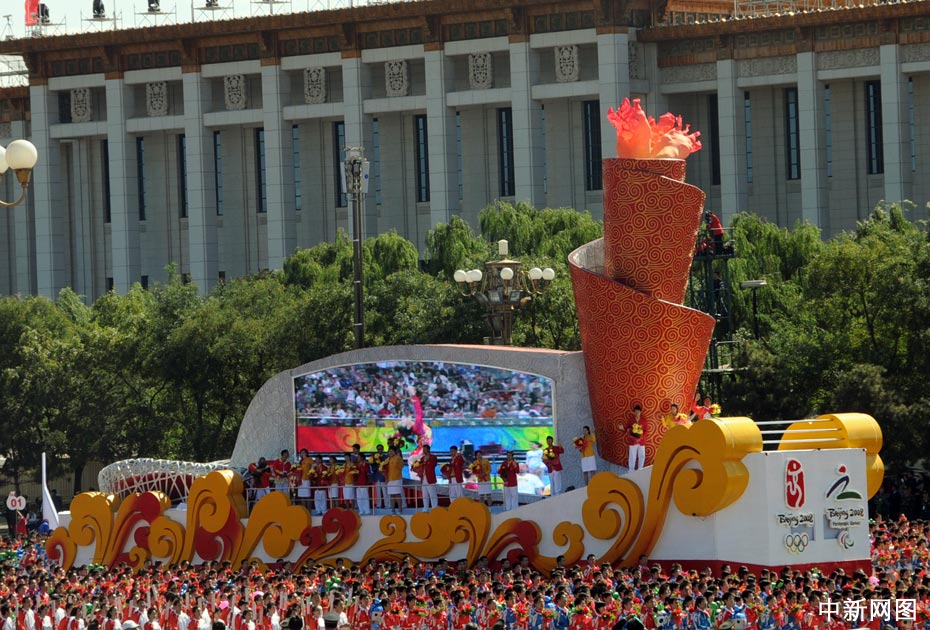 刘翔李宁亮相彩车