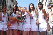 2009年10月1日,北京,首都各界庆祝中华人民共和国成立60周年大会在北京举行。图为阅兵式上英姿飒爽的女民兵。
