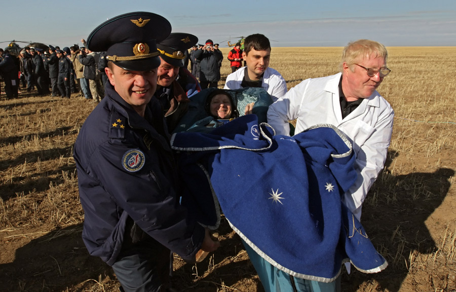 10月11日,俄罗斯“联盟TMA-14”载人飞船携加拿大太空游客盖·拉利伯特及两名宇航员一起返回地球,成功在哈萨克斯坦着陆。来源:中国新闻网