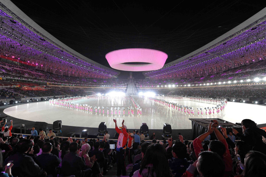 十月十六日晚,中华人民共和国第十一届运动会在山东济南奥体中心隆重开幕。中新社发 陈文 摄