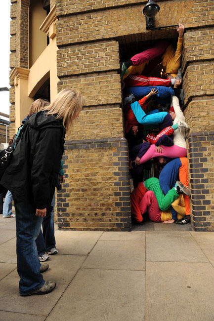 10月16日,来自奥地利的艺术家威利·多勒带着他的城市空间人体艺术团队,在伦敦街头进行艺术表演。几十位表演者把自己的身体挤进通道入口、壁凹和任何能找得到的公共建筑的缝隙内,供人们欣赏。