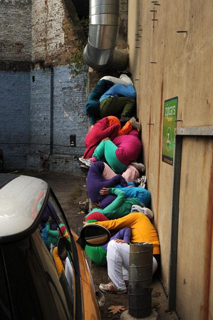 10月16日,来自奥地利的艺术家威利·多勒带着他的城市空间人体艺术团队,在伦敦街头进行艺术表演。几十位表演者把自己的身体挤进通道入口、壁凹和任何能找得到的公共建筑的缝隙内,供人们欣赏。