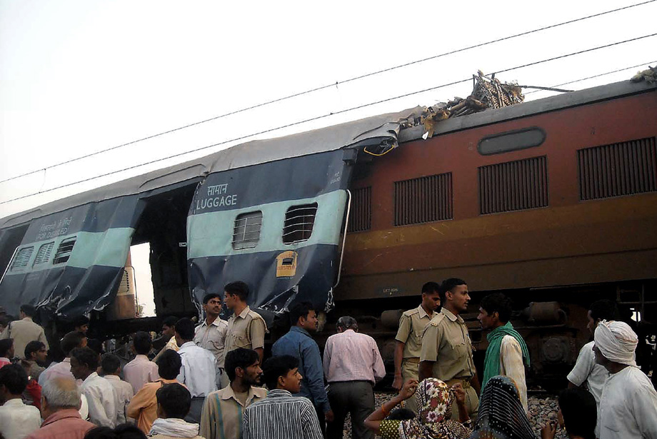 印度北方邦21日凌晨发生两列火车相撞事故, 一辆来自西南部果阿的快运列车在马图拉附近与一列来自西部拉贾斯坦邦梅瓦尔的快运列车相撞,造成15人死亡。来源:中国新闻网