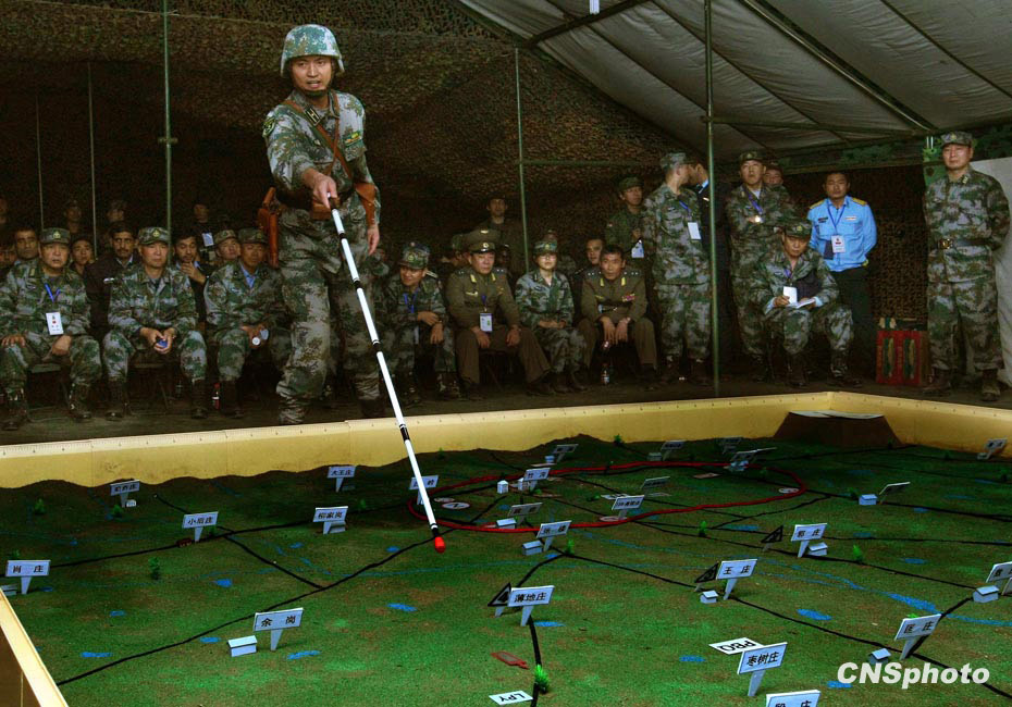 当晚国防大学防务学院、空军指挥学院的外军学员,以及英国、以色列、土耳其、巴基斯坦等国军事观察员亲临现场观摩了后勤保障战斗准备、自行榴弹炮占领阵地、装甲车辆“摸黑”开进等战斗要素。图为后勤保障指挥部指挥员下达战斗任务。中新社发 宋吉河 摄