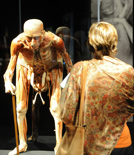 近日,德国解剖学家巩特尔·冯·哈根斯制作的人体解剖模型在新加坡科学中心展出。图片来源:中国新闻网