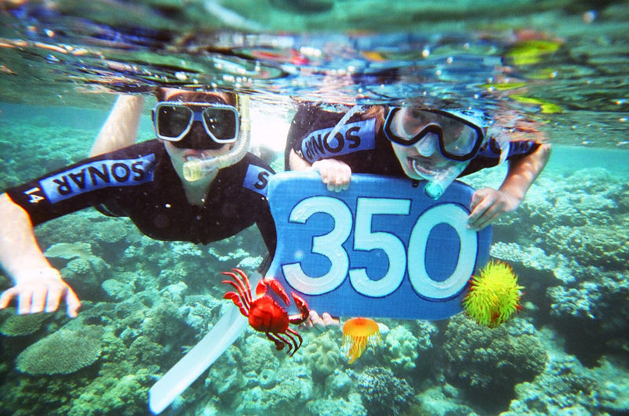 2009年10月24日,当日是350全球应对气候变化行动日,世界各地的民众纷纷用自己的方式来表示对全球气候变化的关注和担忧。图为澳大利亚民众组织活动纪念350全球应对气候变化行动日。